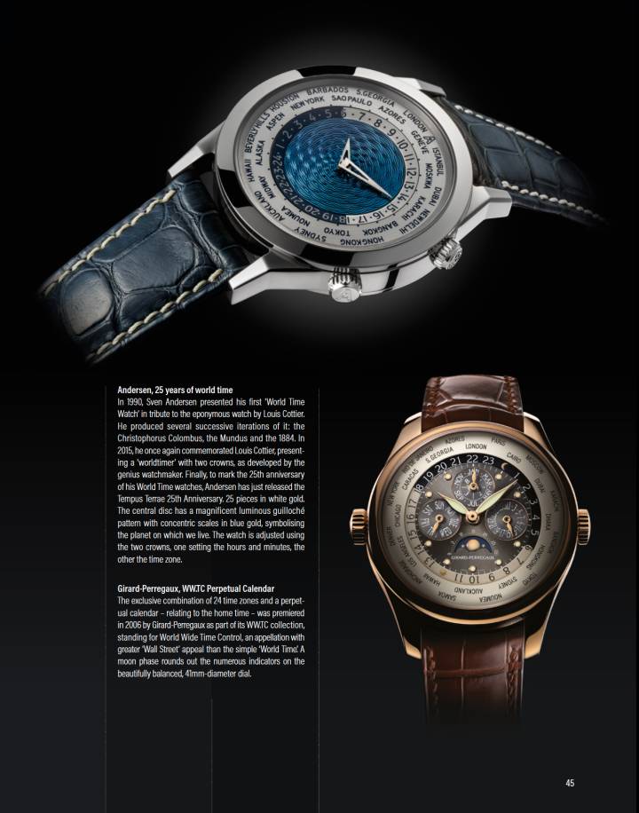 - En 1990, Andersen Genève presentó su primer modelo World Time, llamado “Communication” (columna derecha).
