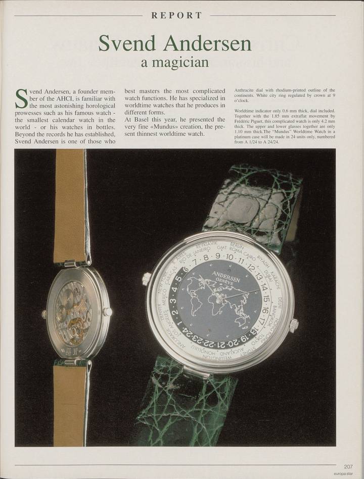 Mientras trabajaba en Patek Philippe a principios de la década de 1970, Svend Andersen tuvo la oportunidad de trabajar en la complicación de Hora Mundial desarrollada por el legendario relojero con sede en Ginebra Louis Cottier. En la década de 1930, Cottier creó el primer reloj de bolsillo y luego el primer reloj de pulsera, con un módulo que podía mostrar diferentes zonas horarias.