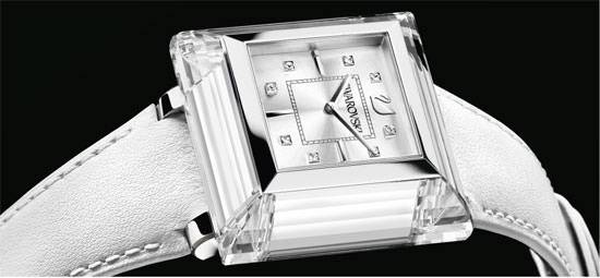 Los relojes son claramente una prioridad para la empresa Swarovski, como expresión de su artesanía, la creatividad y experiencia en el corte del cristal en esta nueva forma de arte. Así como para los minoristas que buscan lo último en relojes de cristal.