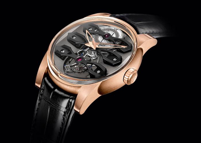 Directamente inspirado en la arquitectura contemporánea, por el hecho de utilizar el volumen para mostrar la tridimensionalidad de la esfera de la mejor manera posible, abierta para darle un aspecto aireado, cortada en titanio, arenada y con un recubrimiento en PVD negro, estos tres puentes de vanguardia renuevan totalmente el vocabulario de diseño de la marca.
