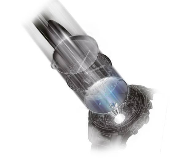 El reloj muestra simultáneamente dos tiempos - el tiempo en el lugar donde se encuentre, usando las grandes agujas principales, y el tiempo en casa, que está representado en una pequeña esfera interior. Alternativamente, si se prefiere, las posiciones de estos dos tiempos pueden ser intercambiadas.