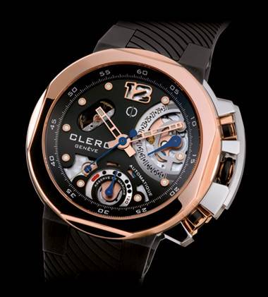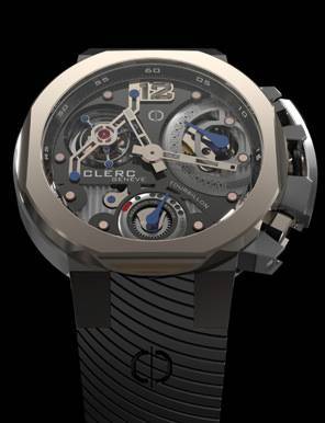 Reloj de titanio, 18 quilates (44 mm) equipado con un movimiento automático especialmente confeccionado. Esfera perforada, balanza visible, fecha retrograda entre la 1 en punto y las 4 en punto, 5 días de reserva de energía, cuyo indicador esta ubicado a las 6 en punto, bisel interior rotativo, exclusivo dispositivo deslizante que protege los pulsadores y la corona, doble barril, 45 joyas, 28.000 vib/h, biselado, puentes Côtes de Genève, tornillos azules, correa de goma.