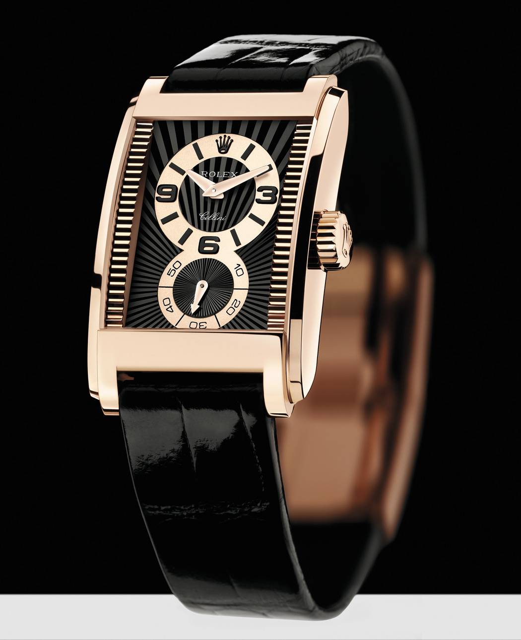 Movimiento: Calibre 7040, Manufactura Rolex, movimiento mecánico de carga manual, puentes decorados con motivos guilloche que coinciden con los de la esfera.
