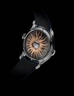 Arquitectura vertical tridimensional, carga automática, concebido y desarrollado internamente por MB&F. Tourbillon central volante de 60 segundos, con un diamante en la parte superior de la jaula del tourbillon volando Reserva de marcha: 100 horas. Frecuencia del volante: 2.5Hz / 18.000vph