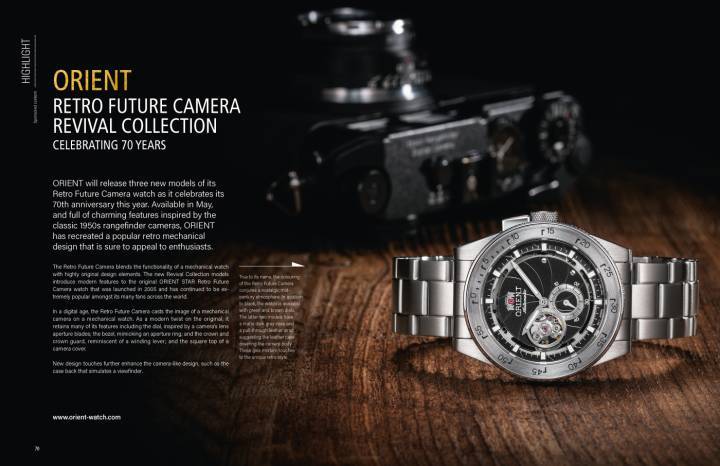 l Retro Future Camera combina la funcionalidad de un reloj mecánico con elementos de diseño muy originales. Los nuevos modelos de la Colección Revival presentan características modernas del reloj Orient Star Retro Future Camera original que se lanzó en 2005 y ha seguido siendo extremadamente popular entre sus muchos fans en todo el mundo.