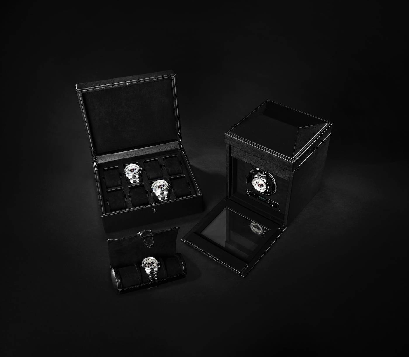 La British Racing Collection incluye una gama de cargadores de relojes disponibles en versiones simples, dobles y triples, de 4, 6 y 8 piezas