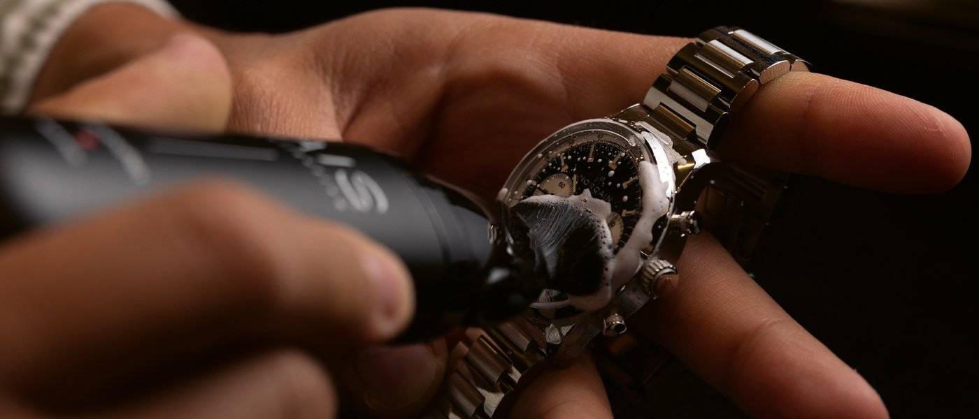 Desde una perspectiva técnica, existen dos enfoques principales para limpiar su reloj: físico y químico. AIS Collective ha desarrollado el ChronoPen, que está diseñado específicamente para limpiar su reloj de manera suave pero a fondo, sin importar el metal del que esté hecho. También es una gran herramienta para limpiar la pulsera de metal, la correa de caucho y el fondo de la caja. El cepillo del ChronoPen viene con cerdas extra suaves y extra largas para que pueda llegar a todos los rincones y grietas y realmente eliminar la suciedad entre los eslabones de la pulsera de su reloj.