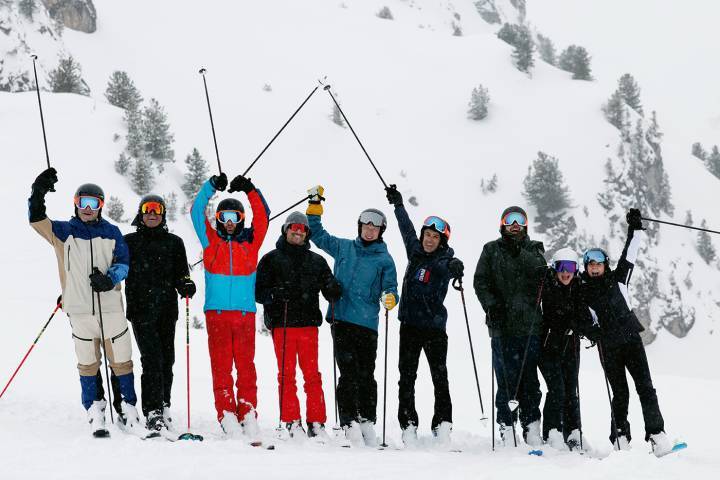 - El equipo de la Ski Clinic Richard Mille con periodistas invitados y el campeón de biatlón Johannes Thingnes Bø (chaqueta azul, centro).