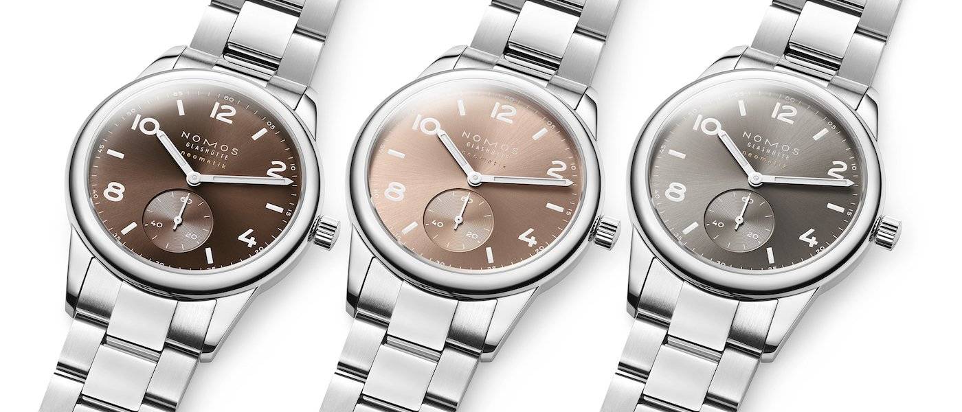 omos Glashütte presenta tres nuevos relojes, todos en los colores radiantes de finales de verano: Club Sport neomatik 39 en tabac (marrón oscuro), brasa (beige dorado) y smoke (gris claro) estará en las muñecas de los relojes conscientes de las tendencias. amantes antes de que caigan las hojas.
