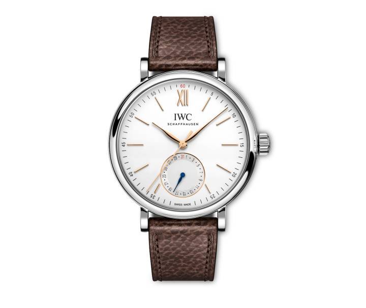 También presentado por IWC, el Portofino Automatic Pointer Date (Ref. IW359201) presenta una indicación de fecha de puntero en un subcontador a las 6 en punto. En la esfera analógica, una pequeña aguja señala la fecha actual. Cada noche alrededor de la medianoche, el puntero salta a la nueva fecha. Este Portofino clásico y elegante presenta una caja de acero inoxidable de 39 milímetros, una esfera plateada y agujas y apliques dorados. Está equipado con una correa de piel de becerro marrón con un sistema de cambio rápido.