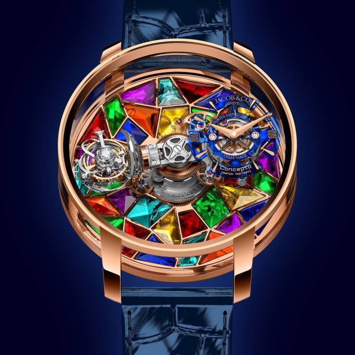 n tourbillon de cuatro ejes. Es una primicia mundial, donada a la organización benéfica más ilustre de la relojería. Es un logro tecnológico. Es el reconocimiento de una asociación profunda y fructífera entre Jacob & Co. y Concepto Watch Factory. Es la prueba de que estar “Inspirado por lo imposible” hace que lo imposible se haga realidad.