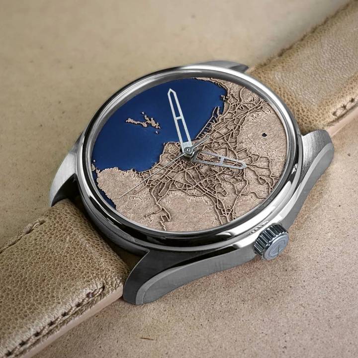 Atelier Caradant es un proyecto original lanzado el año pasado por Julien Caradant, quien se dedicó a la relojería después de una carrera como ingeniero ferroviario en Francia. El concepto es utilizar un material relojero poco convencional, el papel, para cubrir la esfera y la masa oscilante. Los motivos son altamente personalizables. Entre los modelos creados se encuentran CityMaps, una representación de tu ciudad en una esfera. $