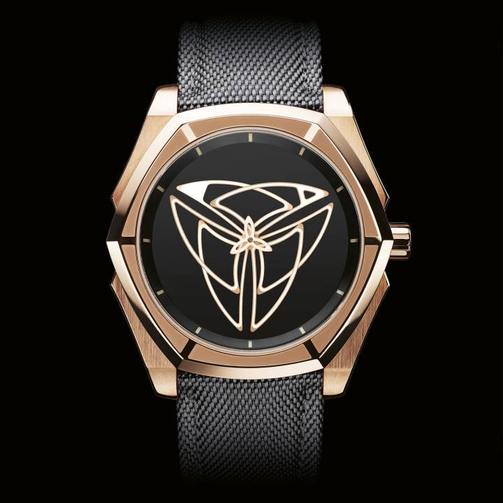 Para la creación de su modelo Ayron, Muse ha explorado la cultura del tatuaje Polinesio. Los dientes de tiburón en la esfera, que representan valentía y heroísmo, se fusionan y separan en la esfera en un fascinante cuadro de movimiento perpetuo. Impulsado por el calibre mecánico automático MU01, el Ayron está alojado en una caja de 44 mm, 100 % titanio de grado 5. Están disponibles varios colores: titanio natural, PVD oro rosa y PVD negro. Las esferas están disponibles en ónix y aventurina. $$$