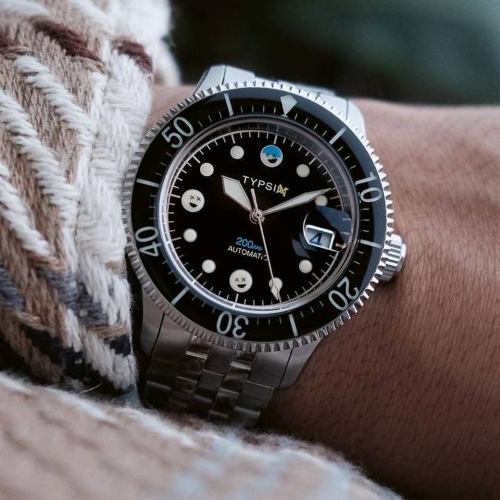 La marca Estadounidense Typsim colaboró con el artista y diseñador Romaric Andre, también conocido como seconde/ seconde/, y el pintor de miniaturas Philippe Jacquin-Ravot (Manufacto), en un peculiar y limitado reloj de buceo de 200 m. El fenómeno de la “narcosis por nitrógeno”, una alteración reversible de la conciencia que se produce al bucear en profundidad, inspiró los motivos del reloj: la relación entre la profundidad y la narcosis a veces se conoce informalmente como “ley de Martini”, la idea de que la narcosis resulta en la sensación de haber bebido un martini por cada 10 m (33 pies) por debajo de los 20 m (66 pies) de profundidad. $$