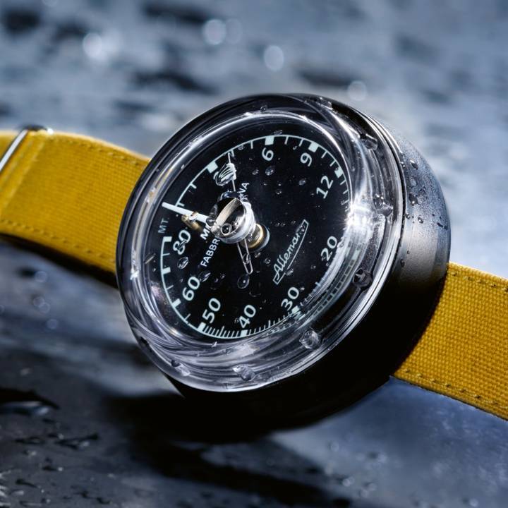 Fundada ya en 1856 por Giuseppe Allemano en Turín, la fábrica Allemano se dedicaba inicialmente a la industria de la carpintería pesada y a la producción de apisonadoras para obras viales. La marca renació hace una década con nuevos propietarios, antes de ingresar al mundo de la relojería en 2019. Su primera colección, 1919, se inspiró en el manómetro del Fiat 501 de 1919 producido por el propio Allemano. El año pasado presentó la colección 1973, equipada con el calibre automático Sellita SW200, con un diseño deliberadamente vintage que rinde homenaje a la innovación técnica detrás de los profundímetros Allemano de los años 80. $$