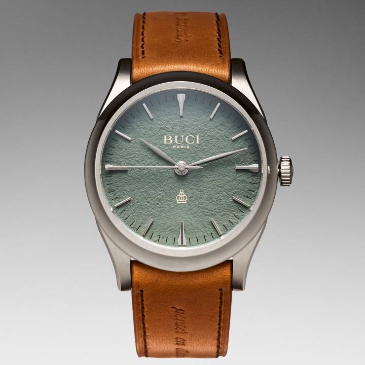 “Poetizar el tiempo” es la misión que se propone la diseñadora Francesa Nousseïma Baraket, amante de la literatura y la relojería. El corazón de los relojes Buci, disponible en distintos colores de esfera y con un tamaño de 38 mm, late al ritmo del movimiento automático Soprod Newton fabricado en la región Franco-Suiza del Jura Arc. Sus correas de piel están hechas a mano en Besançon y llevan grabada una cita de autor. El estuche de presentación está diseñado a modo de libro, y también alberga una colección de obras del primer Concurso de Poesía del Tiempo organizado por la marca. $$
