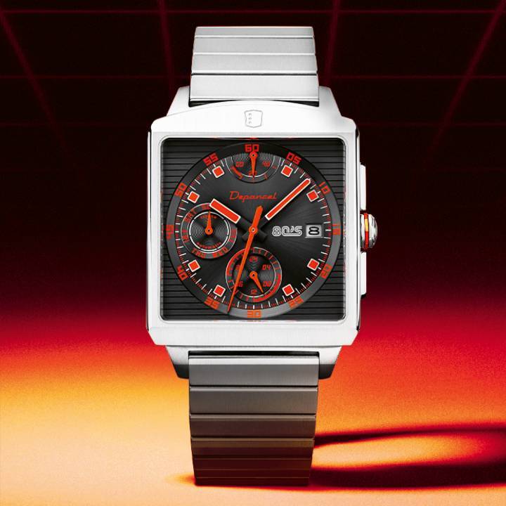 Aficionado tanto del automóvil como de la relojería, Clément Meynier decidió combinar sus dos pasiones creando en 2018 la marca francesa Depancel (una contracción de Delage, Panhard y Facel Vega, buques insignia de la industria automovilística francesa). Los modelos están inspirados en este mundo, diseñados y ensamblados en Francia utilizando movimientos Miyota para garantizar una óptima relación calidad-precio. La colección R-80s toma sus líneas del famoso Ferrari Testarossa. Su estilo asertivo en una caja cuadrada de 43 mm fabricada en acero 316L evoca las esferas de los años 80. $