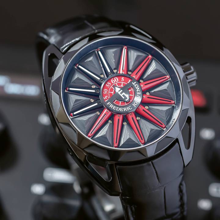 Frédéric Jouvenot, maestro relojero creativo, creó su marca homónima en 2008. Inventó su propio estilo y volvió a destacar en 2011 con su colección Solar Deity, que revela una complicación única: una interpretación poética (y patentada) del reloj de sol. Ese mismo año ganó el Watch Award en la Exposición del Tiempo de Ginebra. Sus últimas creaciones para 2023 son los Helios Albedo y Helios Carbon, con un diámetro de 42 mm y asas rediseñadas para una óptima ergonomía. Se fabrican por encargo y por lo tanto requieren un poco de paciencia... no mucha para tener un sol mecánico de relojería en la muñeca. $$$$