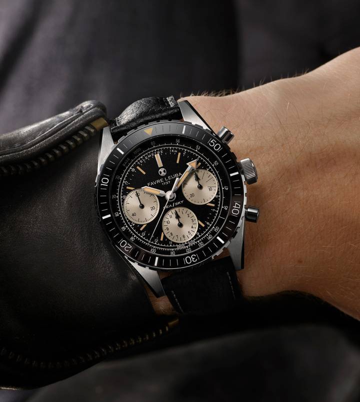 - El nuevo Chief Chronograph de Favre Leuba conserva los elementos de diseño distintivos del reloj de los años 70 que se muestra a continuación, incluida la caja “cojín” de inspiración vintage, pero actualizada con una estética deportiva y contemporánea. Está equipado con el movimiento de cronógrafo La Joux-Perret L113.