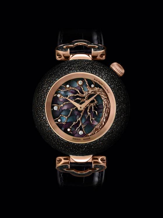 Kerbedanz tiene que ver con el simbolismo. El Tree of Life Black Edition es una declinación de la pieza femenina del año pasado que atrajo gran atención. Como su nombre indica, representa el árbol de la vida, símbolo de crecimiento e inmortalidad, con ramas que trepan hacia el cielo y raíces que se hunden profundamente en el suelo. Se utilizaron diferentes técnicas de elaboración en la esfera, incluido el esmaltado, bajorrelieve y el vidriado. Los diamantes negros de la caja y los cuernos dan al modelo un aura particularmente misteriosa.