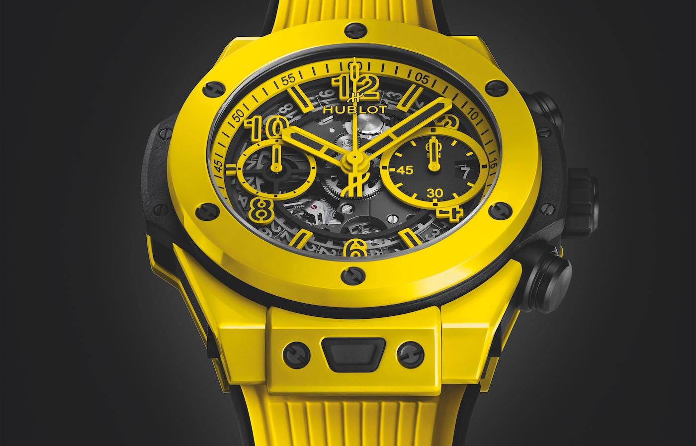 - Después del rojo en 2018, su primera cerámica de colores brillantes, Hublot extiende su paleta al amarillo brillante en el Big Bang Unico Yellow Magic.