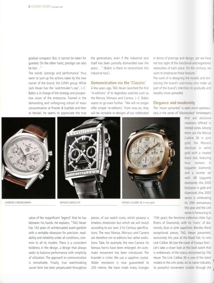 - «TAG Heuer Nostalgia» - un artículo de 1998 publicado en Europa Star.