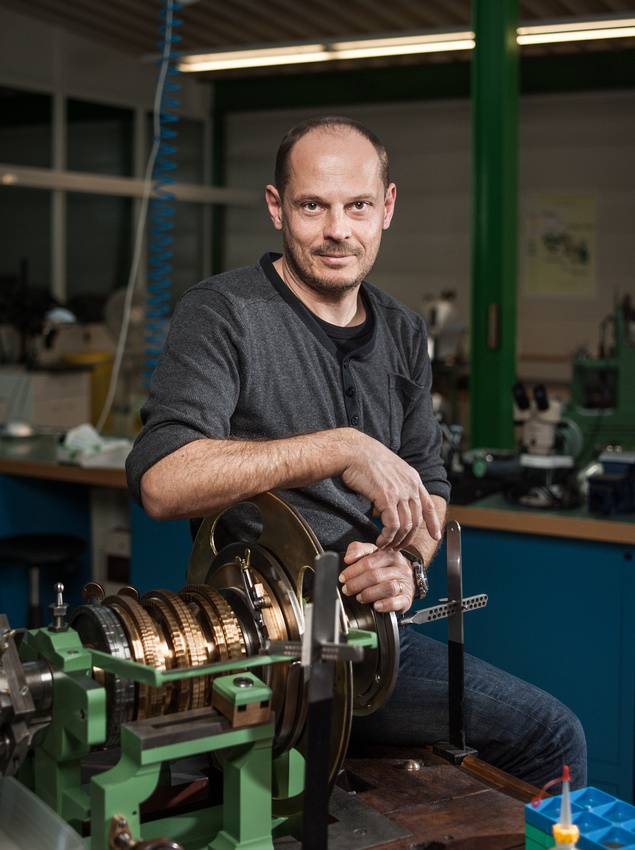 El propietario nos cuenta su atípica carrera: “Después de ocho años de investigación aplicada en la EPFL y en Canadá y cuatro años en una empresa derivada del CSEM, anhelaba la independencia; Ya no quería ser un eslabón de una cadena jerárquica opaca”. Este doctor en Ciencias Técnicas (hizo su doctorado sobre las propiedades de las finas capas de diamante sintético) y experimentado tornero o guilloqueador, trabaja detrás de la escenas en un oficio actualmente floreciente.