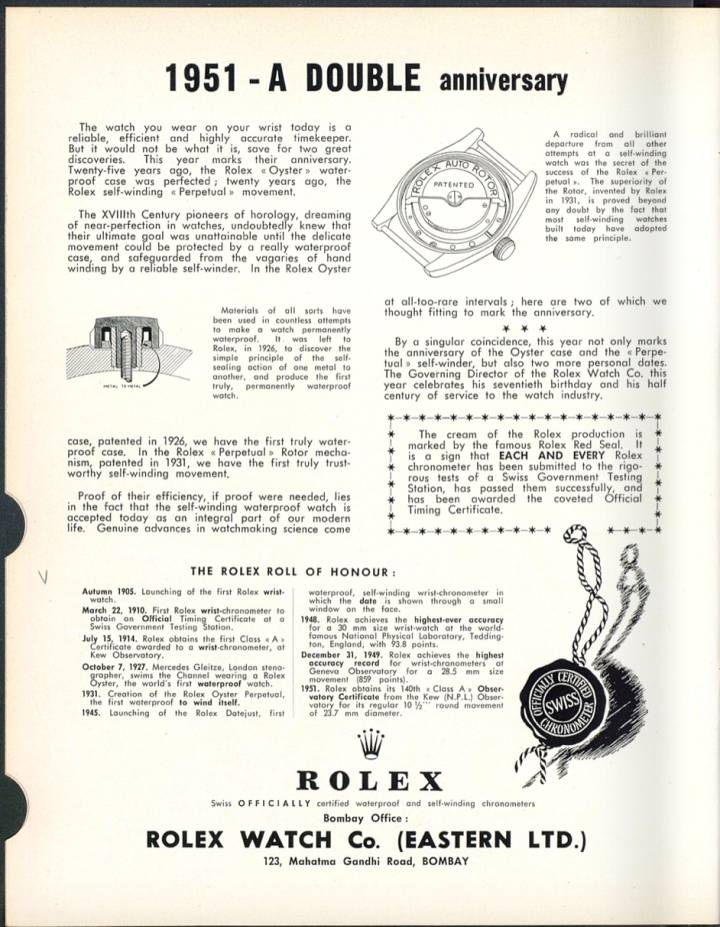 - 1951: el 25 aniversario de la caja Oyster y el 20 aniversario del movimiento automático Rolex Perpetual en una edición de Europa Star.