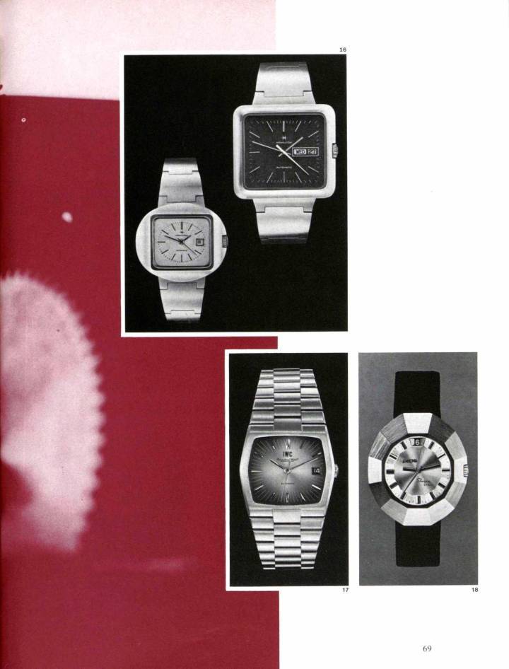 - Las formas inusuales fueron populares en la década de 1970, como lo ilustran estos modelos presentados por Hamilton, IWC y Enicar en el salón de Ginebra